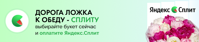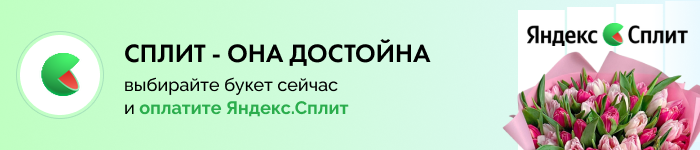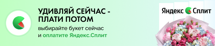 - В качестве способа оплаты нужно выбрать Яндекс Сплит. В сервисе Яндекс Сплит нужно выбрать срок платежа — это 2, 4 или 6 месяцев. Первый платёж нужно сделать в день покупки, а остальные в течение нескольких месяцев в определённую дату. Например, букет из 101 розы можно приобрести за 6099 рублей в рассрочку на полгода. Первоначальный взнос в размере 1075 рублей необходимо оплатить сразу, а оставшиеся пять платежей — каждое 20-е число месяца.
